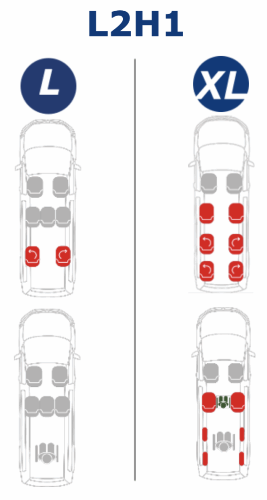 Il est également possible de conserver les trois d’origine du véhicule sur la version L. Cela permet d’augmente le confort pour les passages de cette dernière, tout en garantissant une place confortable au rand 3 pour le fauteuil.
