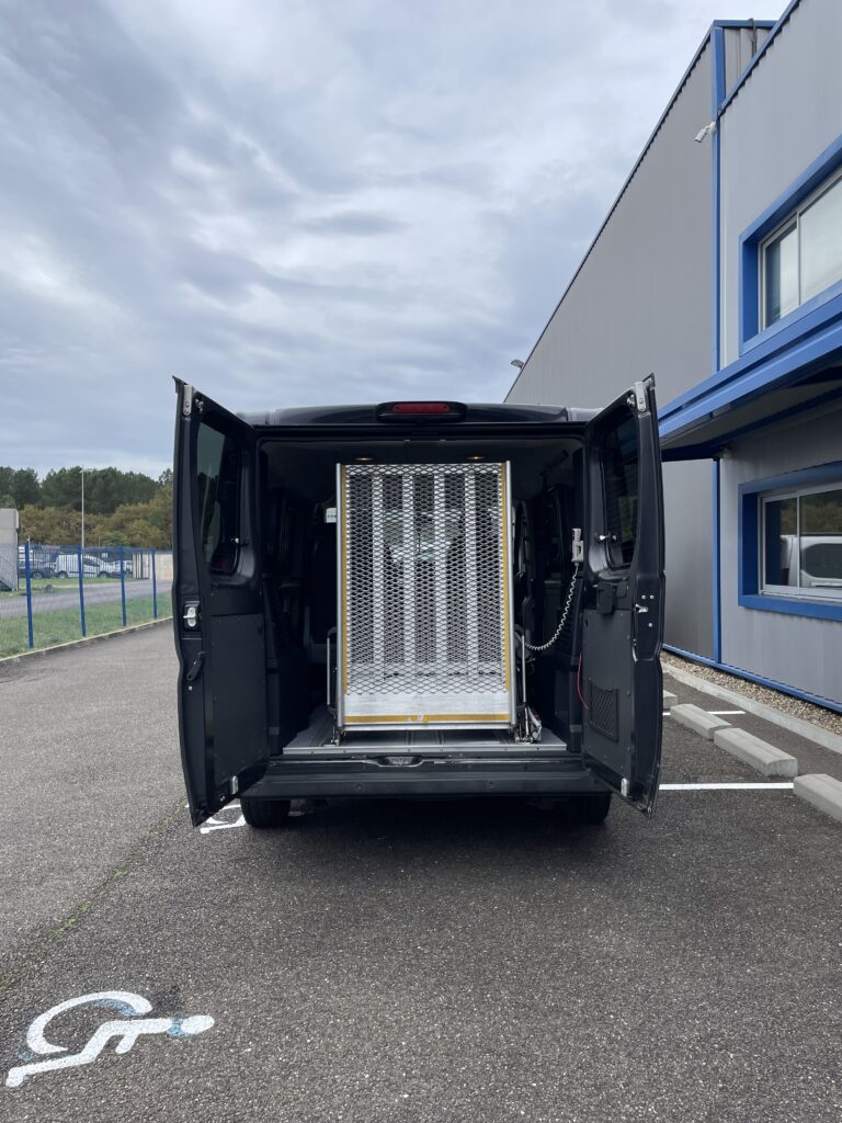 Le véhicule est équipé d’une rampe manuelle assistée par vérins et motorisée électriquement. Cette rampe, lorsqu’elle est refermée, maintient une visibilité correcte sur la lunette arrière.